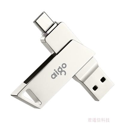 爱国者(aigo)64GB Type-C USB3.1 手机U盘 U350 银色 双接口手机电脑两用