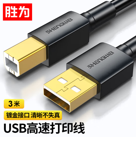 胜为 打印机3米 USB高速打印机线 USB2.0打印机数据线 AM/BM方口连接转换线 支持惠普佳能爱普生 AUB0030G