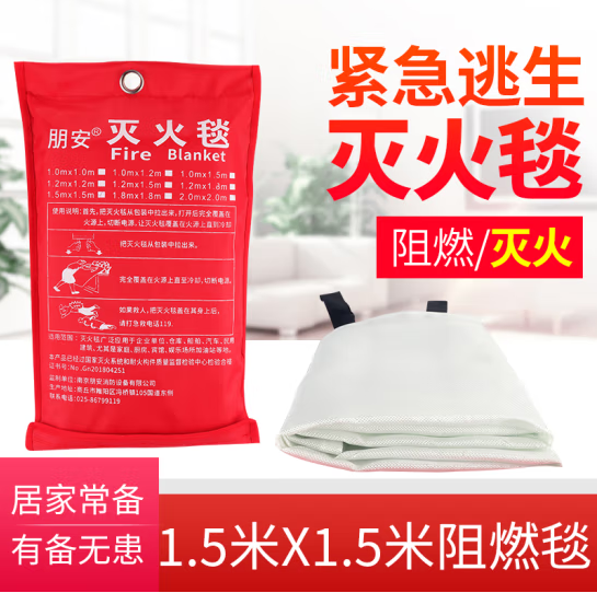 加厚火毯1.5米X1.5米火灾应急逃生毯家用厨房玻璃纤维阻燃毯防火毯救生毯