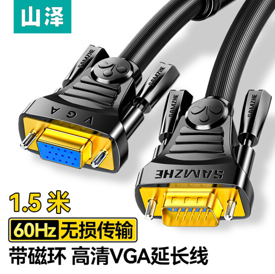 山泽(SAMZHE)工程级VGA延长线 vga3+6 VGA公对母连接线 电脑显示器电视视频加长线 针对孔1.5米VF-2015 |