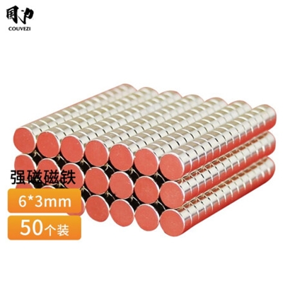 国为(COUVEZI) 圆形强力磁铁/磁片/高强度钕铁硼小磁石/教学白板小磁铁片强磁铁 吸铁石 6*3mm(50个装) |