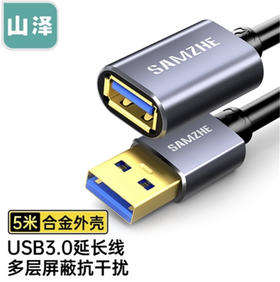 | 山泽(SAMZHE) USB延长线 usb3.0高速传输数据连接线 公对母 AM/AF U盘鼠标键盘加长线 铝合金黑色5米LK-50 | |||