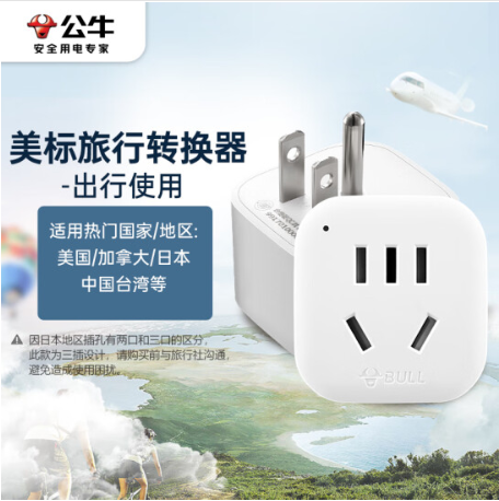 公牛(BULL)美标旅行电源转换器插座/转换插头 适合美标地区美国 加拿大 日本等国家及中国台湾地区 GN-901A