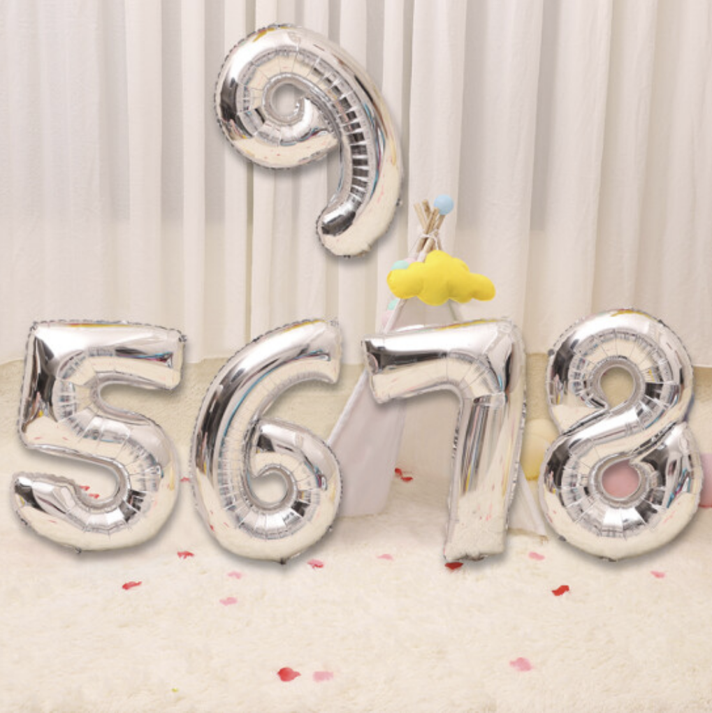 数字气球 生日装饰气球16寸 银色数字5-9