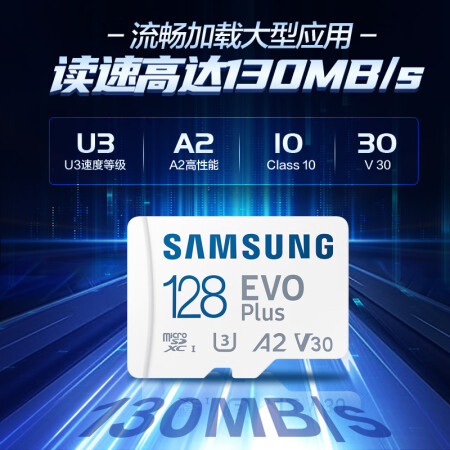 三星(SAMSUNG)128GB TF(MicroSD)存储卡EVO Plus U3 V30 A2读130MB/s高速游戏机平板内存卡 |
