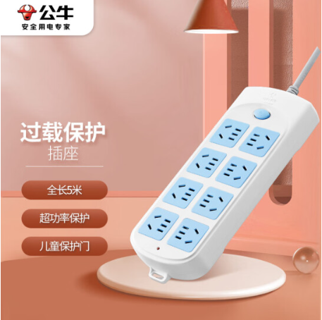 公牛(BULL)超功率保护新国标插座/插线板/插排/排插/接线板/拖线板 8位总控全长5米 GN-604