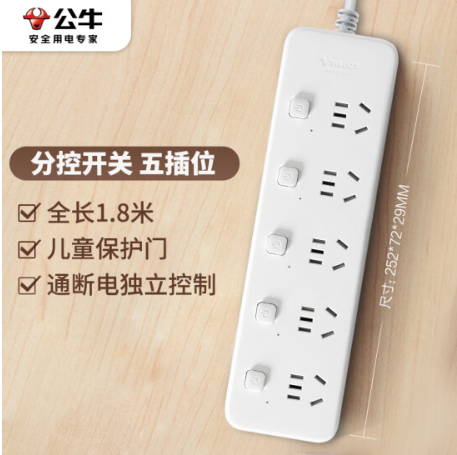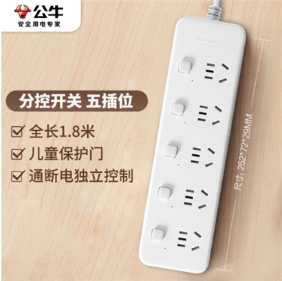 公牛(BULL)新国标分控插座/插线板/插排/排插/接线板/拖线板 GN-B2053 5位分控全长1.8米 独立开关