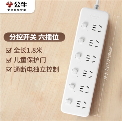 公牛(BULL)新国标分控插座/插线板/插排/排插/接线板/拖线板 GN-B2063 6位分控全长1.8米 独立开关