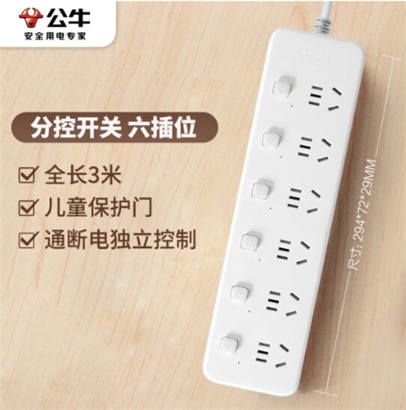 公牛(BULL)新国标分控插座/插线板/插排/排插/接线板/拖线板 GN-B2063 6位分控全长3米 独立开关 |