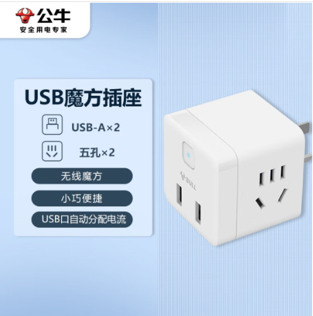 公牛(BULL) 小魔方USB插座 插线板/插排/排插/接线板 2孔+2USB口 无线魔方 GNV-U9B122 |