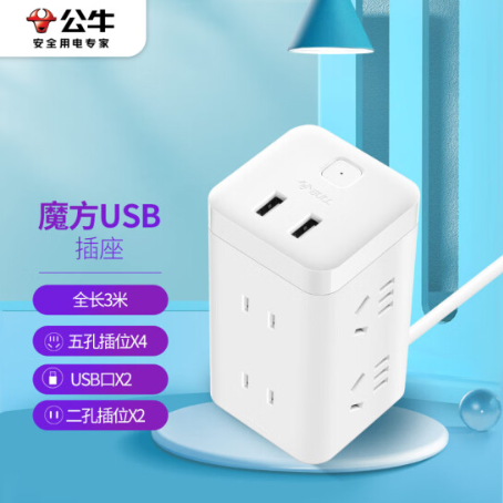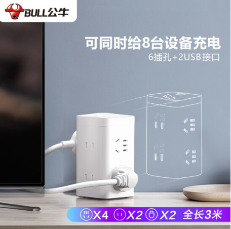 公牛(BULL) 大魔方智能USB插座 插线板/插排/排插/接线板/拖线板 GNV-UU2126 白色魔方USB插座全长3米 |