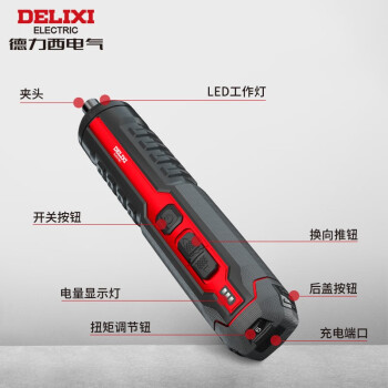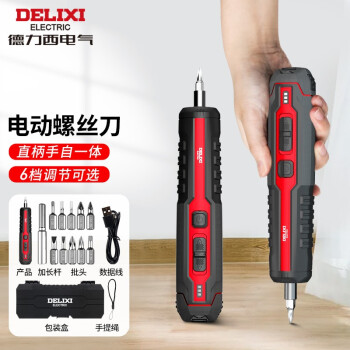 德力西 直式电动螺丝刀 DES5 3.6V直柄手自一体两用锂电螺丝批组套14件套 |