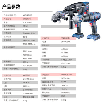 东成20V无刷冲击钻电钻扳手四用锂电电锤角磨机切割机套餐WCKIT18B