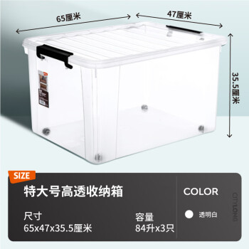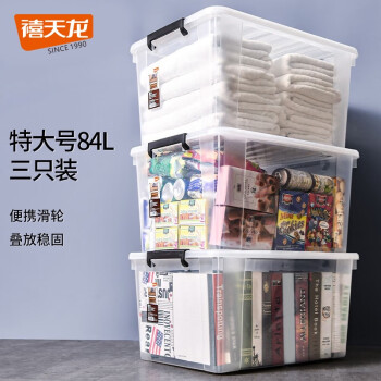 禧天龙被子衣物收纳箱大号收纳盒抗压搬家整理箱 透明84升3个装