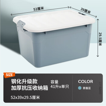 禧天龙 41升加厚塑料收纳箱整理箱 储物箱车载杂物收纳盒 雾霾蓝单只装 |