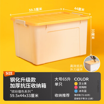 禧天龙钢化升级款 65升大号加厚抗压高韧性撞色收纳箱 儿童杂物收纳 黄 |