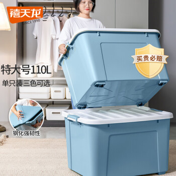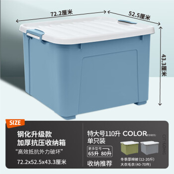 禧天龙(钢化升级款)加厚抗压高韧性收纳箱 110升1个装石青色 特大号