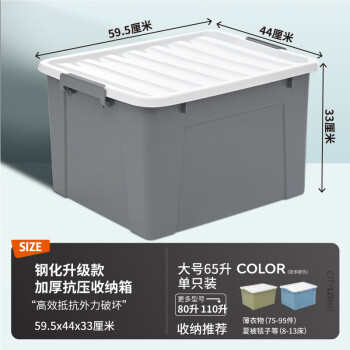 禧天龙(钢化升级款)加厚抗压高韧性收纳箱 65升1个装中灰色 大号 |