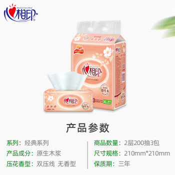 心相印抽纸【肖战推荐】经典系列 XL码2层200抽*3包 纸巾(新旧交替) |