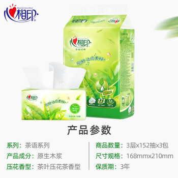 心相印抽纸 茶语系列 3层152抽面巾纸*3包(中规格软抽/新老包装随机发货)