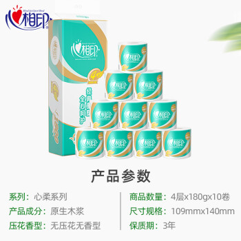 心相印卷纸【肖战推荐】心柔 4层180g*10卷卫生纸巾(大克重)