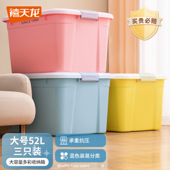 禧天龙被子衣服收纳箱大号儿童玩具抗压加厚整理箱 搬家箱 52升3个装