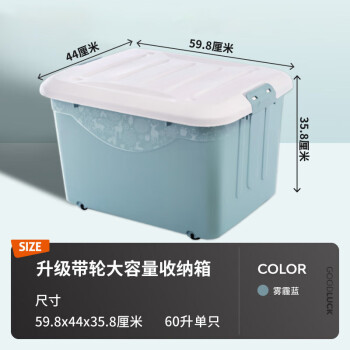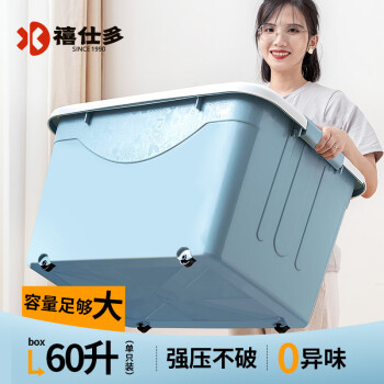 禧仕多塑料收纳箱大号 60升 玩具整理箱 衣服储物箱 搬家打包箱子 带轮