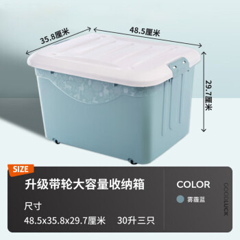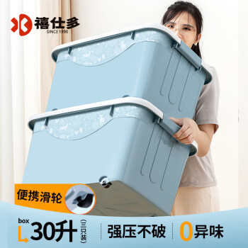 禧仕多塑料收纳箱大号 30升三个装 玩具整理箱 衣服储物箱 搬家打包箱子