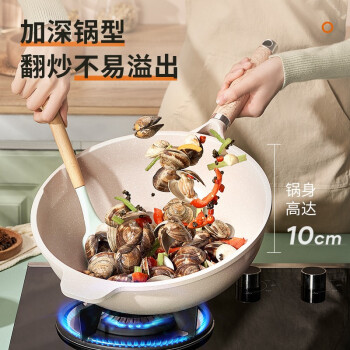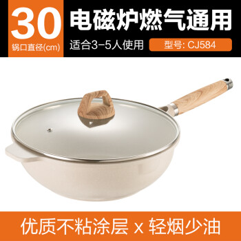 九阳(Joyoung)麦饭石色不粘炒锅30cm炒菜锅平底煎锅燃气灶电磁炉通用锅具CJ584 |