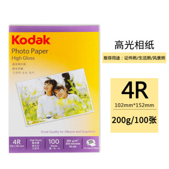美国柯达Kodak 4R/6英寸 200g高光面照片纸/喷墨打印相片纸/相纸 100张装 5740-312