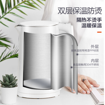 苏泊尔(SUPOR)电水壶 双层防烫烧水壶热水壶 全钢无缝内胆电热水壶SW-17J418 1.7L大容量