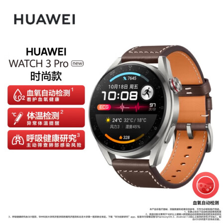 华为(HUAWEI)WATCH 3 Pro New 华为智能手表 棕色真皮表带 时尚款 高端材质/专业健康管理 |