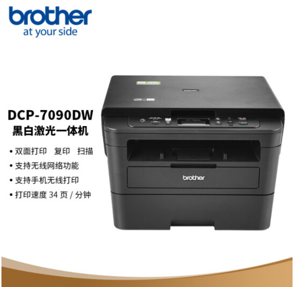 弟(brother)DCP-7090DW 黑白激光一体机(三合一 双面打印 无线网络 )