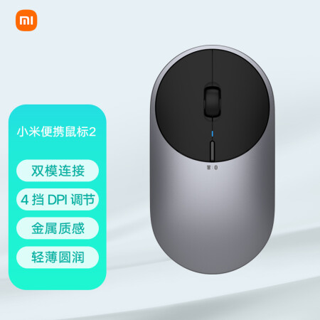 小米便携鼠标2 深空灰色 4档DPI调节 金属质感 双模连接 轻薄圆润 笔记本办公 无线鼠标