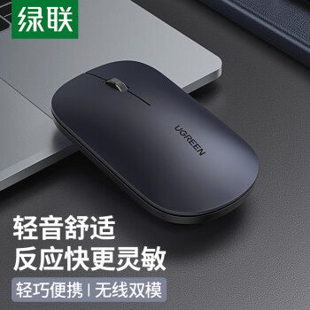 绿联 无线蓝牙鼠标 2.4G/蓝牙双模鼠标 便携办公人体工程学台式机笔记本鼠标 带无线接收器 爵士黑