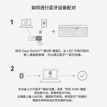 罗技(Logitech) K580 多设备键盘 无线蓝牙全尺寸办公键盘 ipad手机平板电脑键盘 黑色