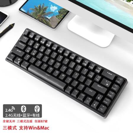 RK68(837)无线机械键盘热插拔轴游戏键盘2.4G有线蓝牙三模电脑外设台式机IPAD办公自营68键白色背光黑色红轴 |