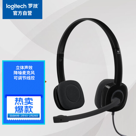 罗技(Logitech)H151 立体声耳机 带麦克风话筒 电脑笔记本办公耳麦 黑色 |