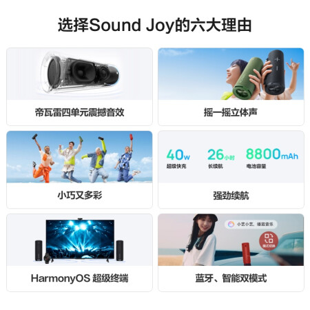 华为HUAWEI Sound Joy 便携式智能蓝牙音箱 电脑音响 防水设计26小时长续航 户外音箱 曜石黑
