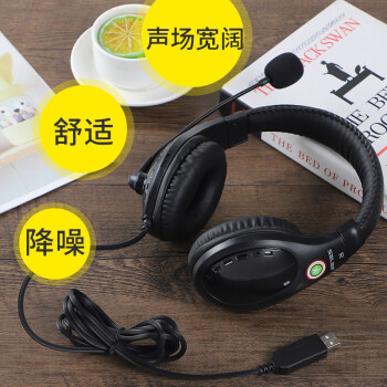 声籁A566 升级版H 头戴式学英语带麦耳机有线 电脑降噪联想电脑笔记本听力考试 网课培训耳麦带话筒 黑色A566H【带麦-内置声卡】USB接口 降噪