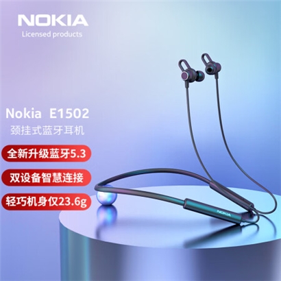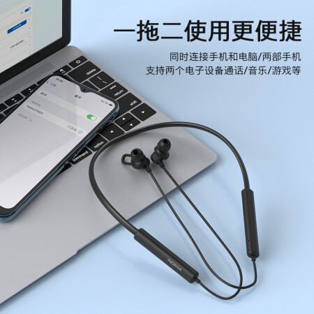 诺基亚 (NOKIA )E1502蓝牙耳机挂脖式运动跑步磁吸入耳式高清通话 适用于苹果华为小米手机无线耳麦 黑色 |