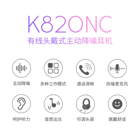 漫步者(EDIFIER) K820NC 有线头戴式主动降噪耳机 音乐耳机 办公教育 学习培训 游戏耳机 黑色