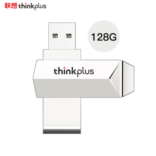 联想(thinkplus)128GB USB3.0高速U盘 金属旋转 车载电脑办公通用优盘TPU301银色