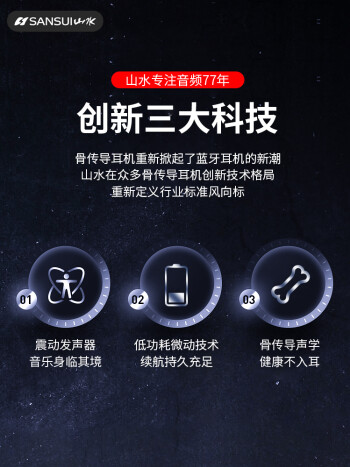 山水(SANSUI) i1骨传导耳机运动耳机跑步无线蓝牙不入耳头戴挂耳式防汗苹果华为安卓手机通用 黑色 |