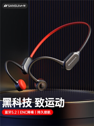 山水(SANSUI)TG18 骨传导耳机 运动跑步蓝牙耳机不入耳挂耳式耳机 适用于苹果安卓华为小米 黑红色