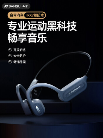 山水(SANSUI)TG7pro骨传导蓝牙耳机骨传导高端磁吸式充电不入耳运动颈挂式无线挂耳式耳机 灰色