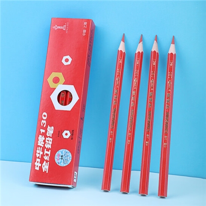 中华 130全红 粗六角全红铅笔记号工程用笔放线施工全红10支/盒 |