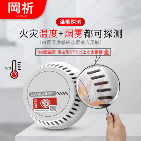 岡祈(Gangqi) 温烟一体双感 温感烟雾报警器 电池款 家用无线消防火灾烟雾温度感应探测烟感报警器工业商用